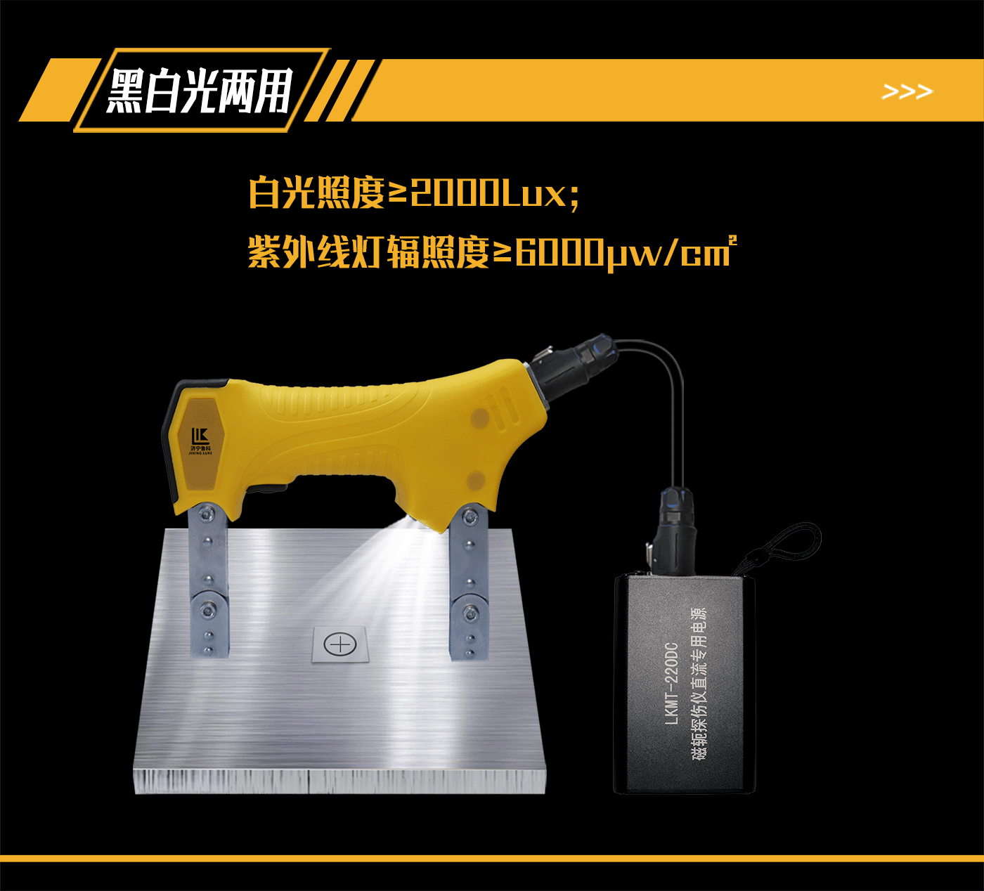 1、LKMT-220DC交直流磁軛探傷儀由D型探頭、電源適配器、鋰電池電源組成;產生交流或直流磁場進行探傷。