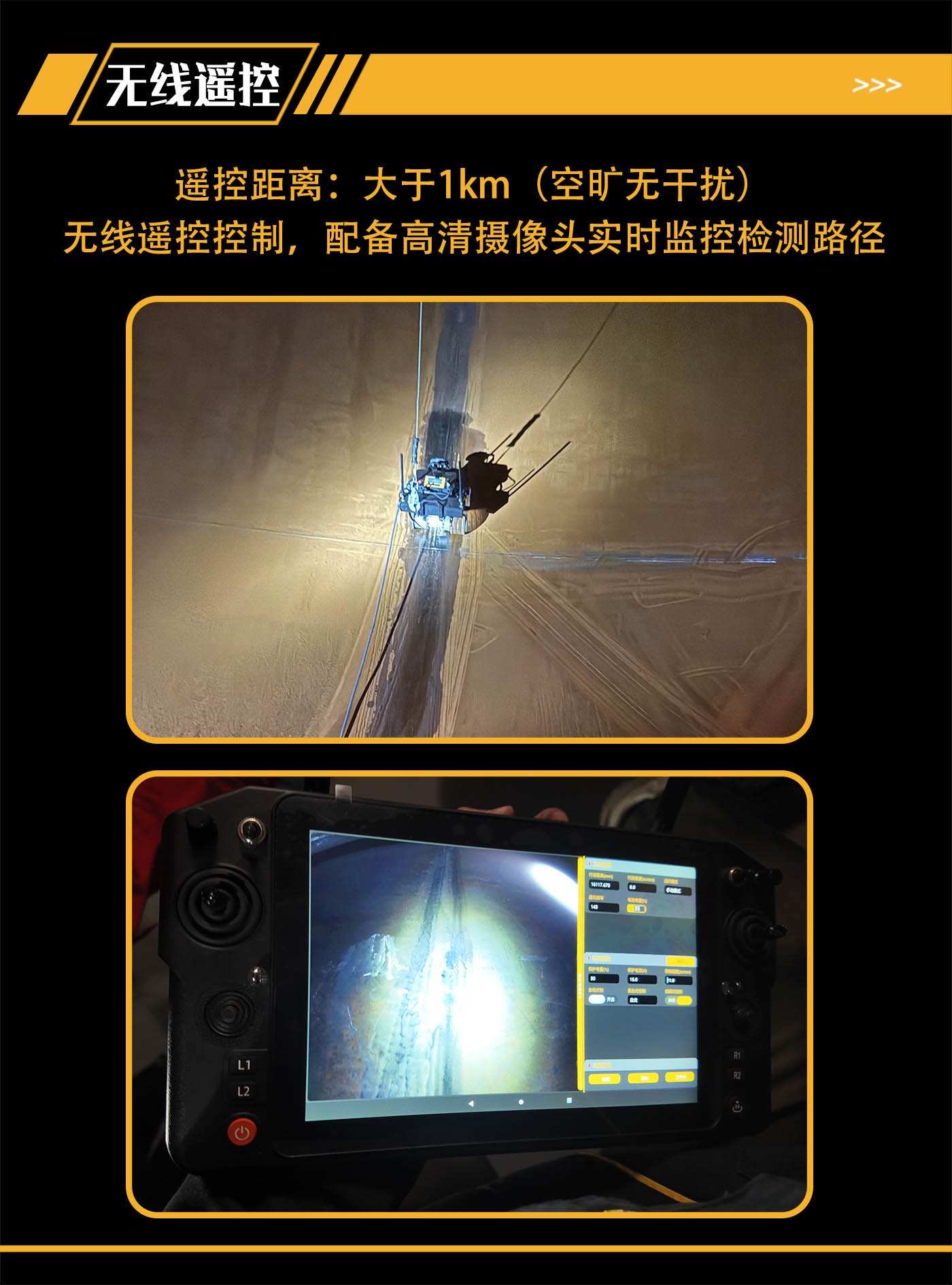 (1)配備遙控器客戶端,可使用進(jìn)行探傷及移動(dòng)參數(shù)的調(diào)節(jié)。