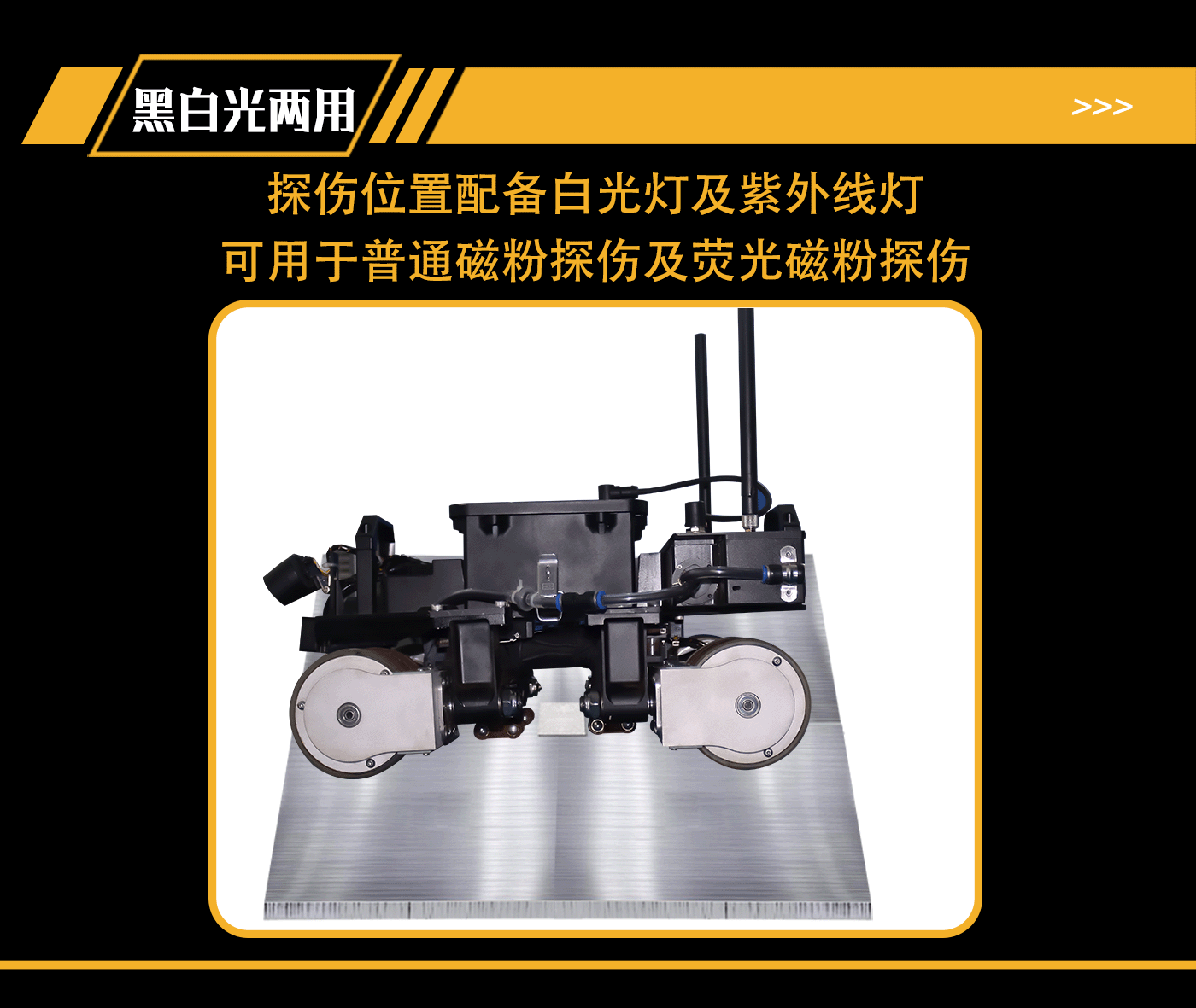 (2)探傷位置配備白光燈及紫外線燈,可用于普通磁粉探傷及熒光磁粉探傷。