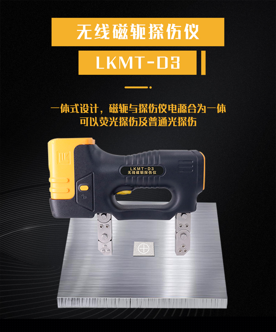 1、LKMT-D3一體式交直流磁軛探傷儀,探頭與鋰電池一體式設計,無需使用線鏈接。