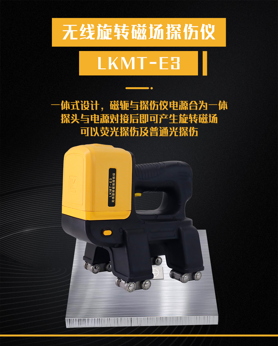 1、LKMT-E3一體式旋轉磁場探傷儀,探頭與鋰電池一體式設計,無需使用線鏈接。