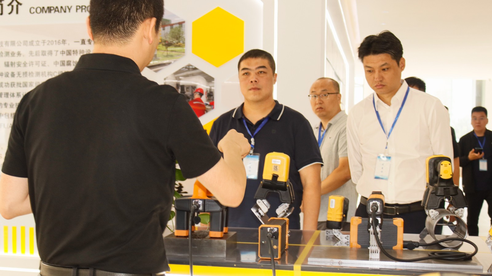 無損檢測機構各位領導在薛建祥總經理的帶領下對我公司展廳、生產車間、研發車間進行參觀指導,對我公司在磁粉探傷儀及交流電磁場(ACFM)檢測儀的產品有了更深的了解,并對我司在定制化研發方面給予高度評價。
