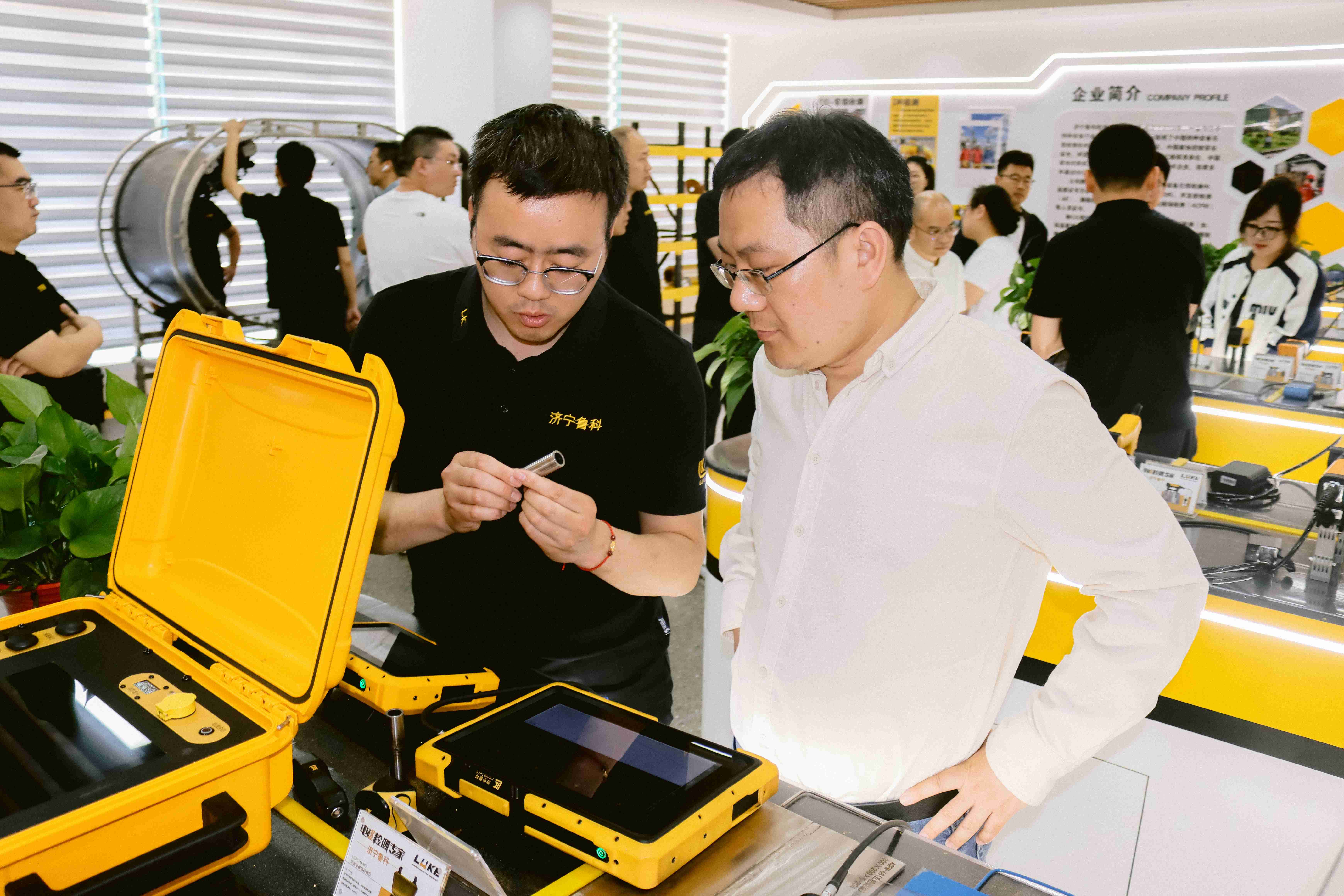 各位專家分別參觀了公司的 磁粉探傷儀(智能識別磁粉探傷儀、場景定制化磁粉探傷儀、一體式磁粉探傷儀、充電式磁粉探傷儀等)交流電磁場檢測儀(ACFM) 自動化檢測儀(磁粉探傷機器人、腐蝕測厚機器人)。