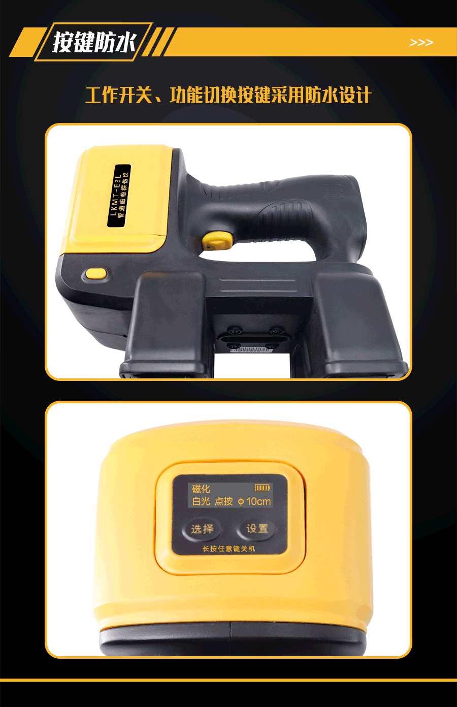 1、LKMT-E3L一體式旋轉磁場管道磁粉探傷儀,探頭與鋰電池一體式設計,無需使用線鏈接。