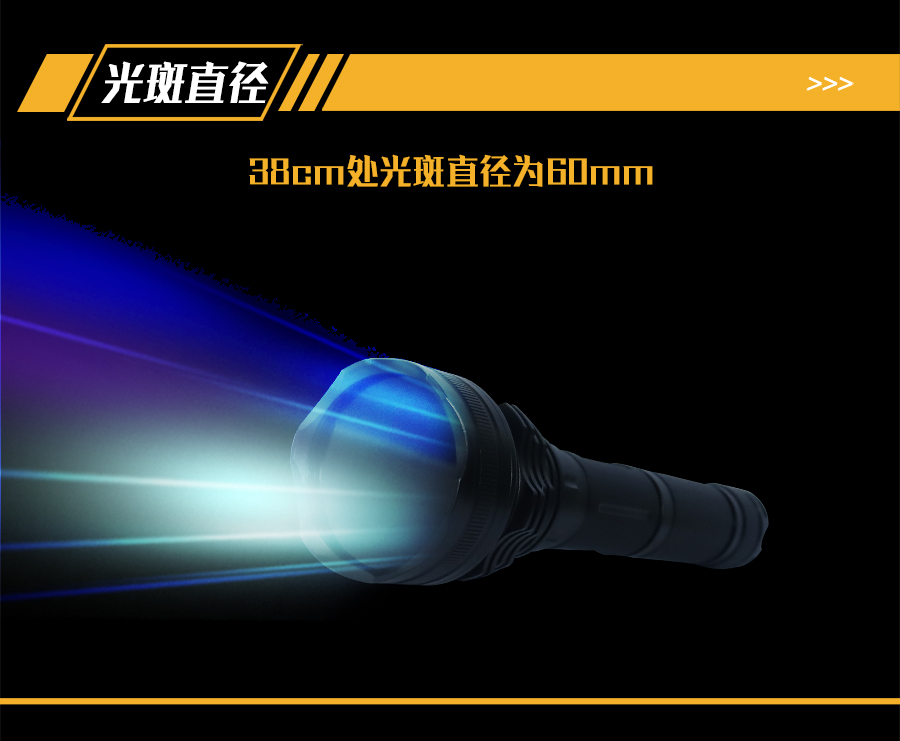 4、光斑直徑,38cm處光斑直徑為60mm;
