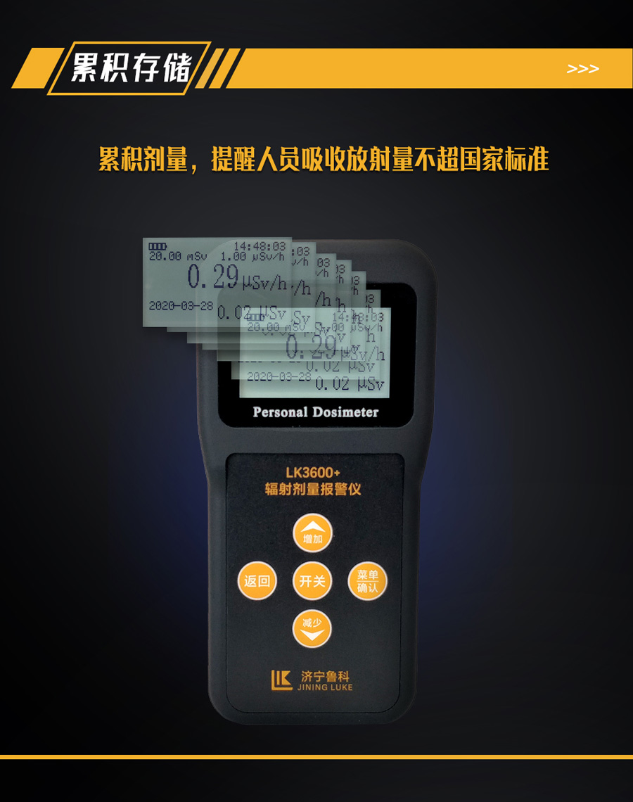 6、累積存儲:累積劑量,提醒人員吸收放射量不超國家標(biāo)準(zhǔn);