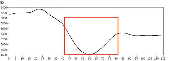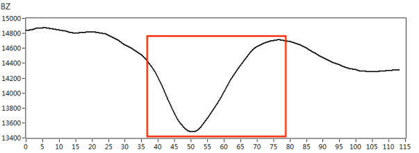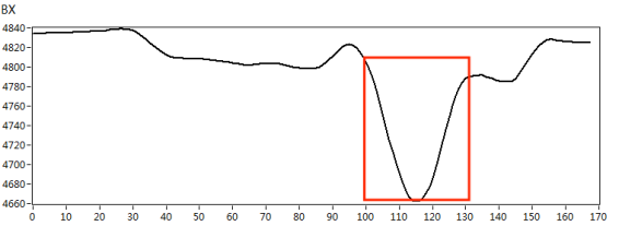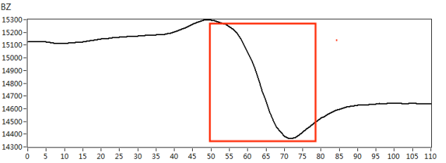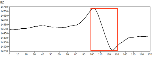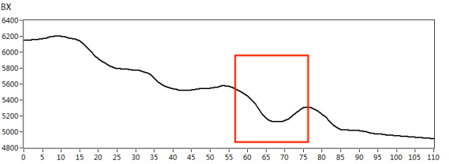 我們根據(jù)實(shí)際檢測對(duì)象的材質(zhì),制作了420*180mm規(guī)格的碳鋼材質(zhì)小接管管座試塊,試塊上角焊縫位置處分別有長度*深度為10mm*3mm、5mm*2mm的人工刻槽作為模擬缺陷,如下圖3所示。采用X1-LP-10型筆式探頭,首先在功能測試試塊上對(duì)交流電磁場檢測系統(tǒng)的綜合性能進(jìn)行核查,得到典型缺陷的特征信號(hào),如圖4所示。然后再對(duì)小接管管座試塊進(jìn)行缺陷掃查,得到以下缺陷掃查圖像,檢測圖像如圖5、圖6所示。