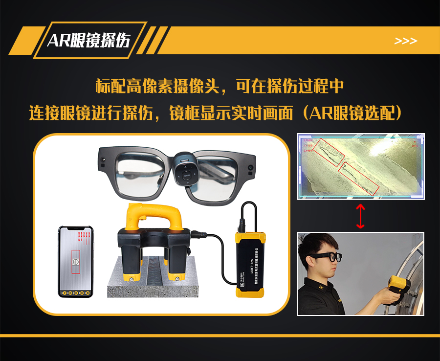 10、探頭內部裝有500萬像素攝像頭,手機、平板電腦或AR眼鏡等手持終端安裝APP軟件,通過Wi-Fi與探頭鏈接,手持終端實時顯示探傷狀態。