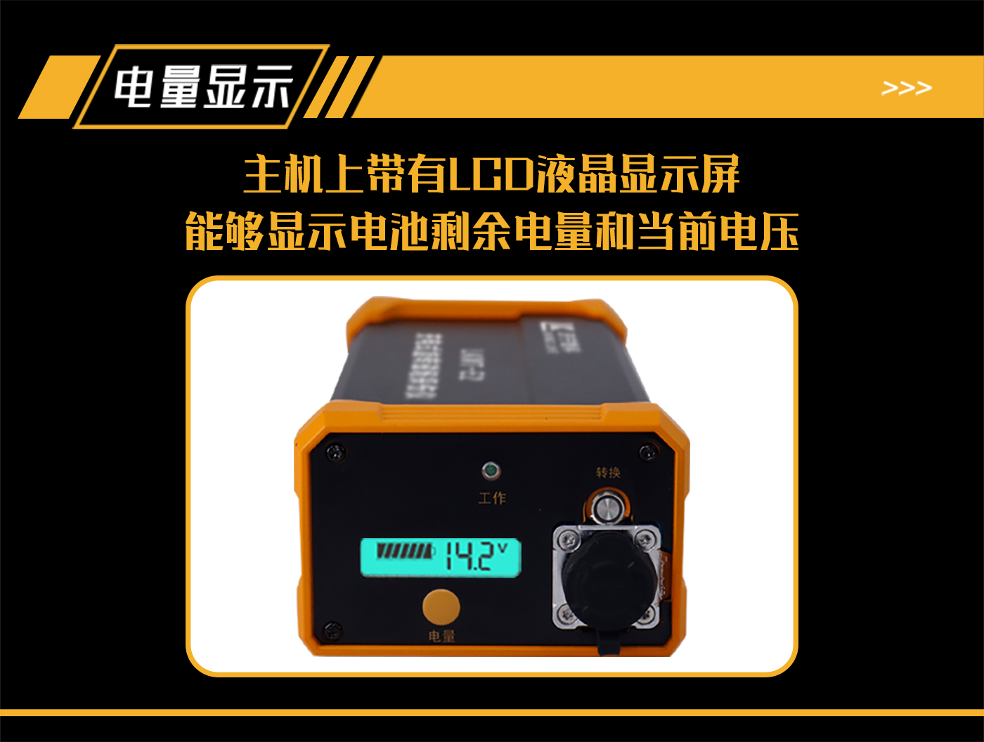4、儀器主機帶有LCD顯示屏及操作按鍵,可顯示剩余電量和電壓;鋰電池電源帶有電量指示燈。