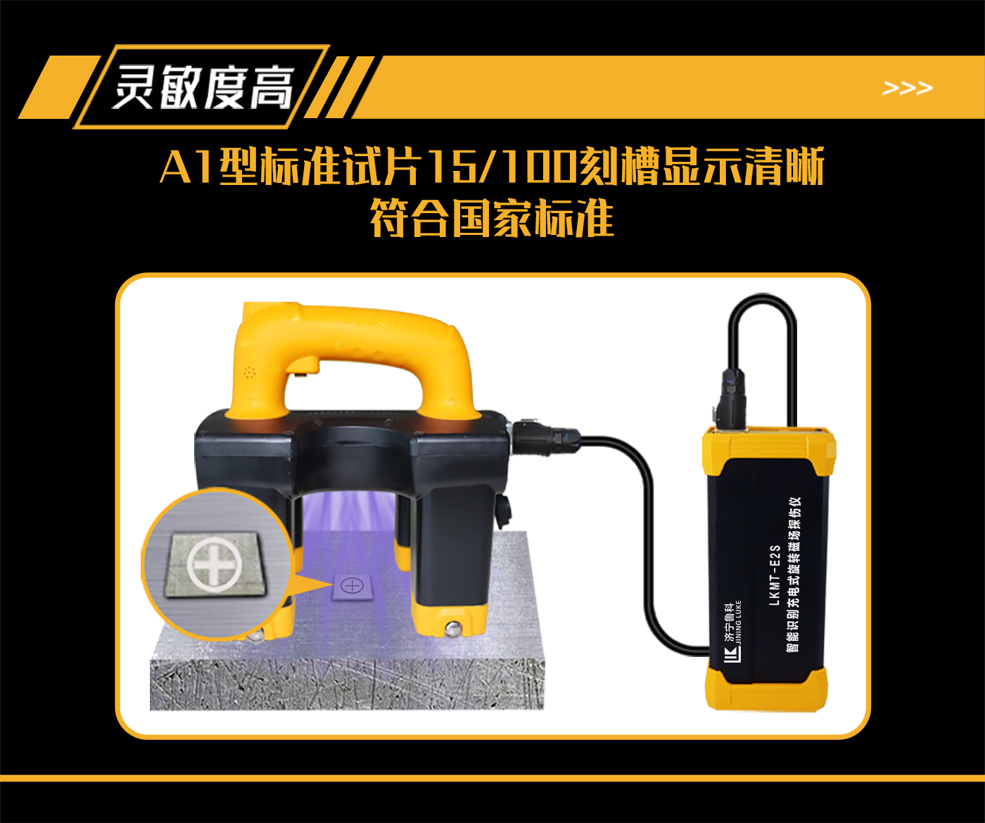 1、LKMT-E2S智能識別旋轉磁場探傷儀,采用鋰電池電源供電,無需外接110V或220V電源即可產生交流旋轉磁場進行探傷。